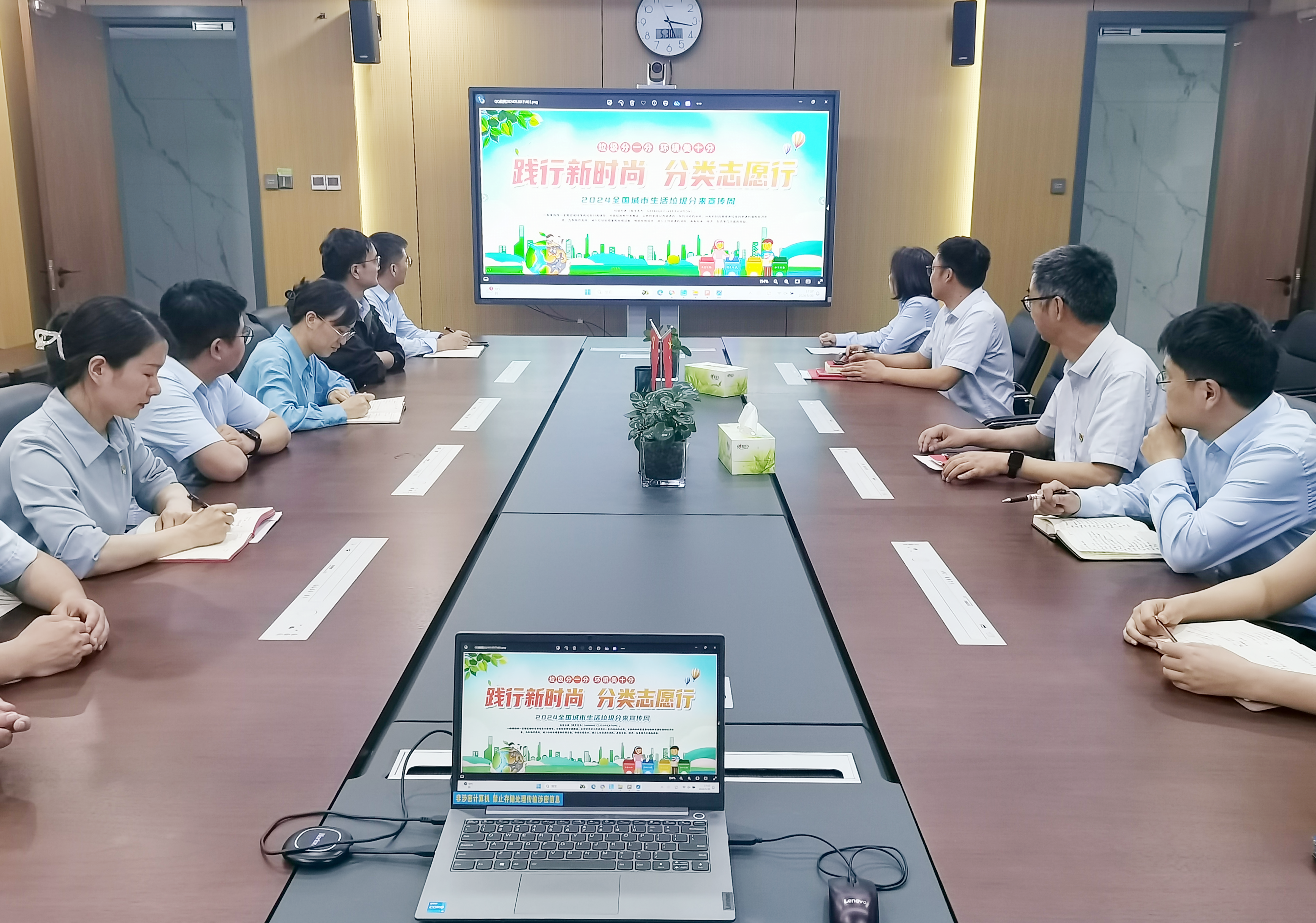 首先,制作垃圾分類宣傳APP、印發(fā)生活垃圾分類投放指南和投放指引等宣傳材料在全體職工中開展廣泛宣傳,組織職工觀看《十四億分之一的堅(jiān)持》和《我想對(duì)你說(shuō)》等專題宣傳教育片等,讓全體員工充分了解垃圾分類的重要性必要性和正確的分類方法,倡議職工通過QQ、微信和抖音等平臺(tái)進(jìn)一步擴(kuò)大宣傳范圍,帶動(dòng)家人、朋友和身邊人從自身做起、從點(diǎn)滴做起,共同參與到垃圾分類的宣傳和實(shí)際行動(dòng)中來(lái)。