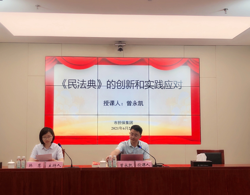 為慶祝建黨100周年,營造濃厚法治氛圍,進一步提高員工法律素養(yǎng),6月23日下午,市擔(dān)保集團邀請到滁州電大法學(xué)副教授、市理論宣講專家?guī)鞂<?、市“青年講師團”講師曾永凱,為集團全體干部職工帶來了一場精彩的《民法典》的創(chuàng)新和實踐應(yīng)對專題培訓(xùn)會。